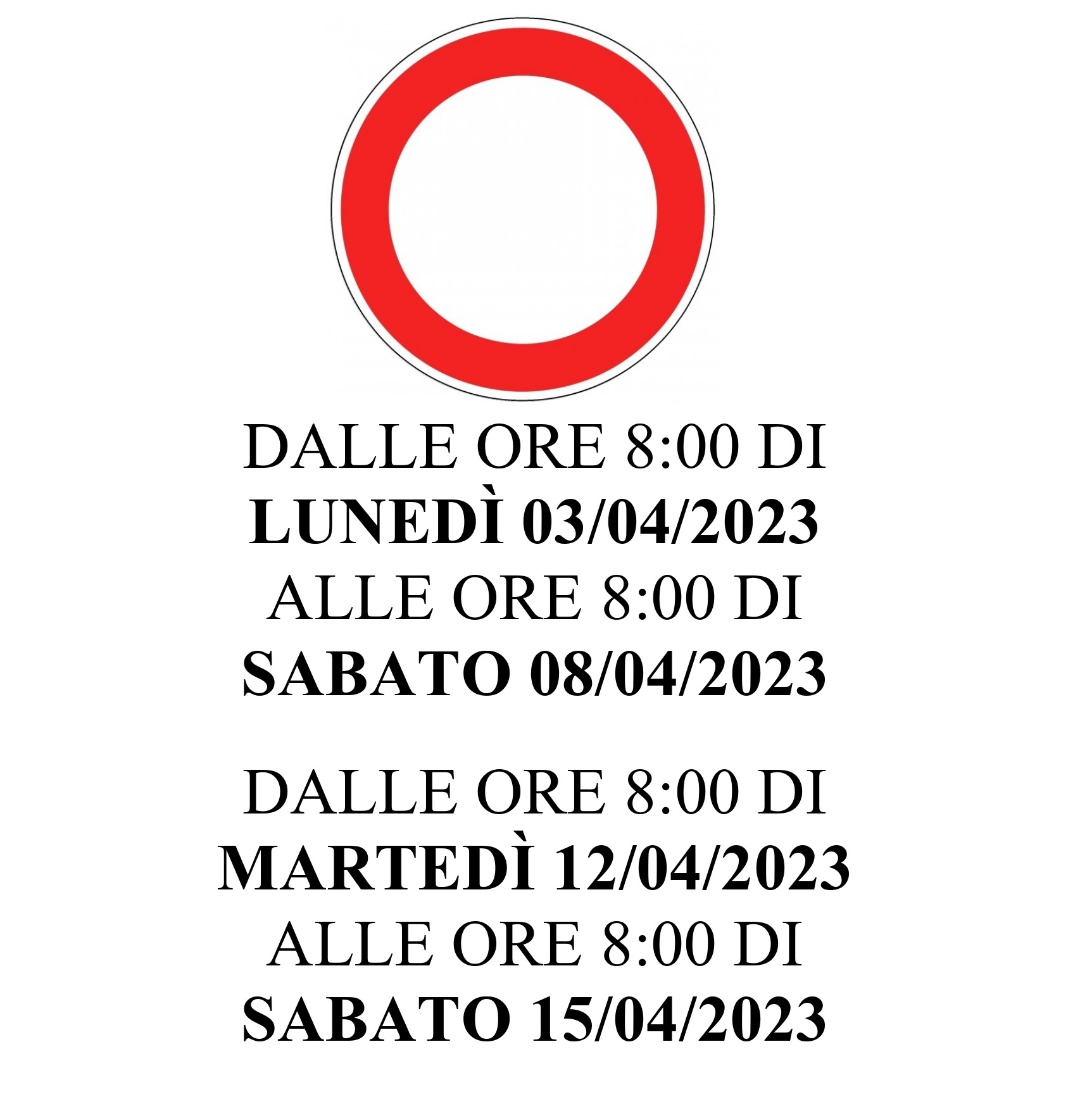 Chiusura totale della strada agrosilvopastorale Avolasio – Roccolo della sella, e divieto di sosta permanente con rimozione forzata sull’intero tratto con decorrenza: