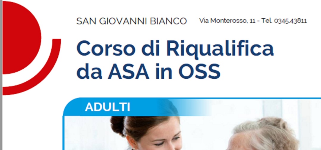 ABF propone il corso di riqualifica ASA in OSS a San Giovanni Bianco.Lezioni pomeridiane da 4 ore, dal lunedì al giovedì. Scopri di più sul sito ABF.eu.