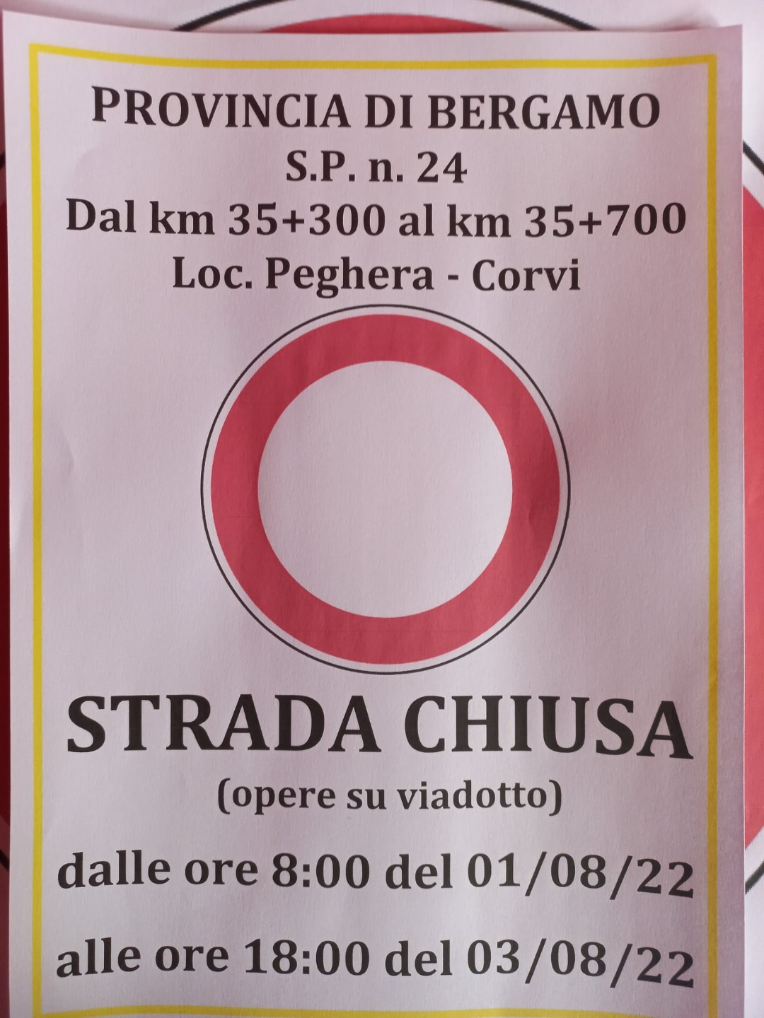 strada chiusa dalle ore 8.00 del 01/08/2022 alle ore 18.00 del 03/08/2022
