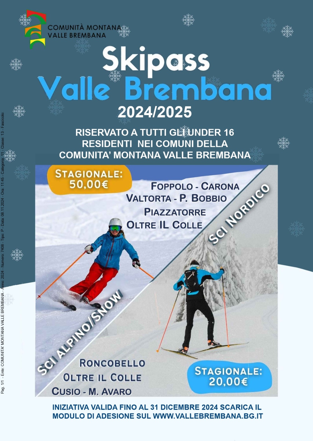 Per i ragazzi under 16 residenti nei Comuni della Comunità Montana Valle Brembana è possibile presentare richiesta per acquistare lo skipass stagionale vallare per sci alpino/snow e sci nordico.